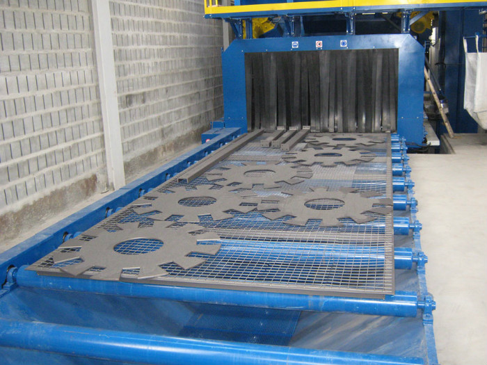 - 輥道輸送式拋丸機(jī)(可處理板材的寬度范圍為 1.5 - 5m,處理速度為每分鐘 (1.0 – 10m)